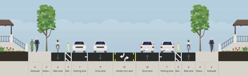 The Market Street Complete Street project will bring more than two miles of Class IV protected bike lanes, on-street Class II bike lanes, wider sidewalks, medians and street trees to the Encanto neighborhood. This project stretches from 47th Street to Euclid Avenue and is expected to be completed by 2023. In addition, this project will include street resurfacing, curb extensions, curb ramps, street lights and traffic signal modifications to make biking and walking around this popular Encanto corridor safer and easier.