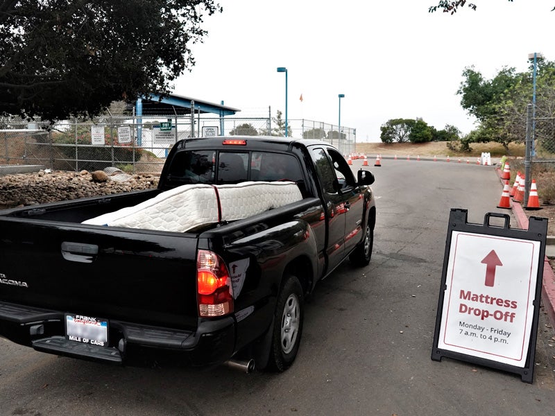 Bye Bye Mattress is a mattress recycling program in California, Connecticut and Rhode Island. Established by law and operated by the nonprofit Mattress Recycling Council, the program uses a recycling fee collected on each mattress and box spring sold to collect, transport and recycle used mattresses. It’s also helping combat illegal dumping. Visit ByeByeMattress.com to learn more about the program.