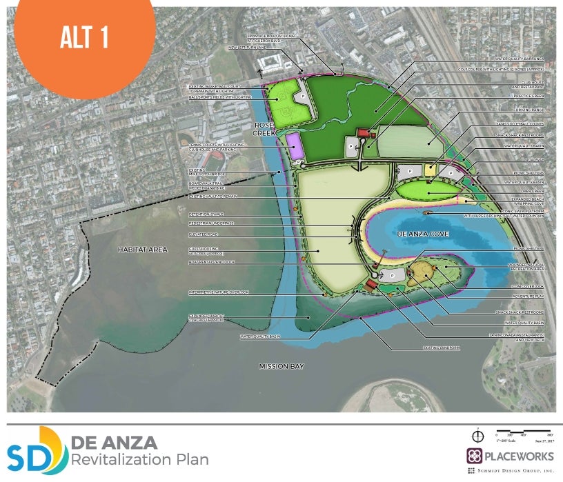 In September 2022, the City released three plan alternatives in addition to the no-project alternative required by CEQA to be studied alongside the De Anza Natural plan in a programmatic environmental impact report. These alternatives were developed by City staff, who considered the many comments received from the public following the release of the Notice of Preparation in early 2022 and stakeholder comments received from the Mission Bay Park Committee and the Parks and Recreation Board.