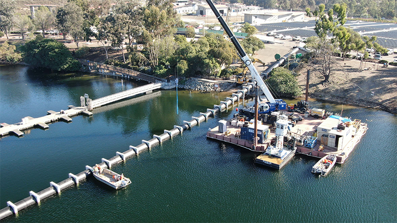 The Subaqueous Pipeline is a one-mile, branched pipeline that will be constructed on barges on the surface of Miramar Reservoir before being sunk and permanently installed on the floor of the lakebed.