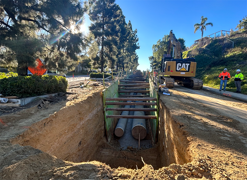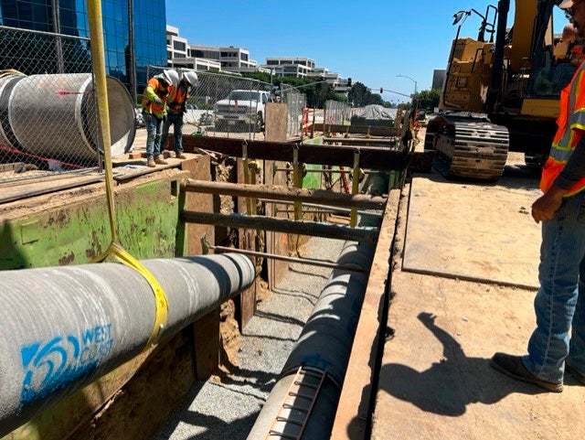 This project includes portions of two 10.5-mile pipelines: one 48-inch wastewater pipeline, which will carry wastewater north to the North City facilities for purification, and one 30-inch brine line that will carry the biproduct from water purification south to the Point Loma Wastewater Treatment Plant.